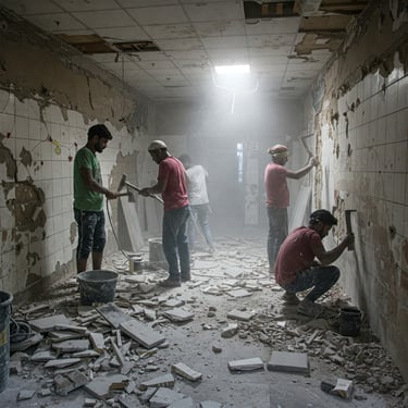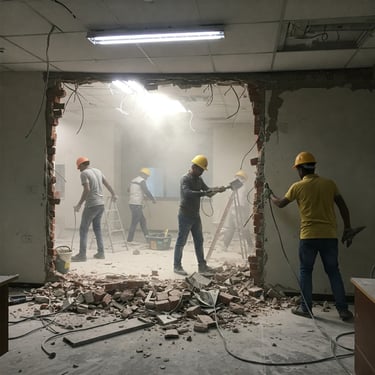 Our services include carpentry demolition, tile hacking, partition removal, false ceiling removal, wall hacking, and floor hacking.